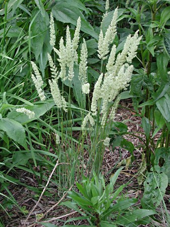 A cool season native perennial grass is usually seen on dry prairies, sandhills and open woods. June Grass grows to a height of 1-2 ft and has dense silvery-green seedheads that are three to five inches long