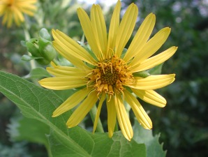 | Cup Plant Silphium laciniatum This hardy perennial requires very litle care and grows 4'-9' tall. Large leaves clasping the stem create a 'cup-like' water container. Hummingbirds and butterflies enjoy the nectar and birds the seeds. Cup Plant is drought tolerant and grows in average to dry soils. Companion plants could be purple Coneflower, Lance-Leaved Coreopsis and Prairie Dock. |