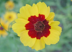 | Coreopsis, Plains Coreopsis tinctoria A bright yellow flower with maroon centers. This annual is native to the Central Great Plains and southern Midwest. This flower reaches a height of 1'-3'. It has a long blooming period May thru Sept. which gives lasting color. Does well in moist to dry sunny areas. A great wildflower for color the first year in a wildflower or meadow planting. |